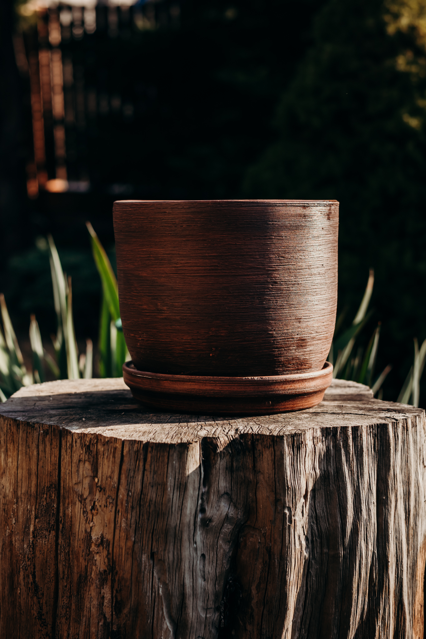 Doniczka gliniana z podstawką | Brązowa 18 cm