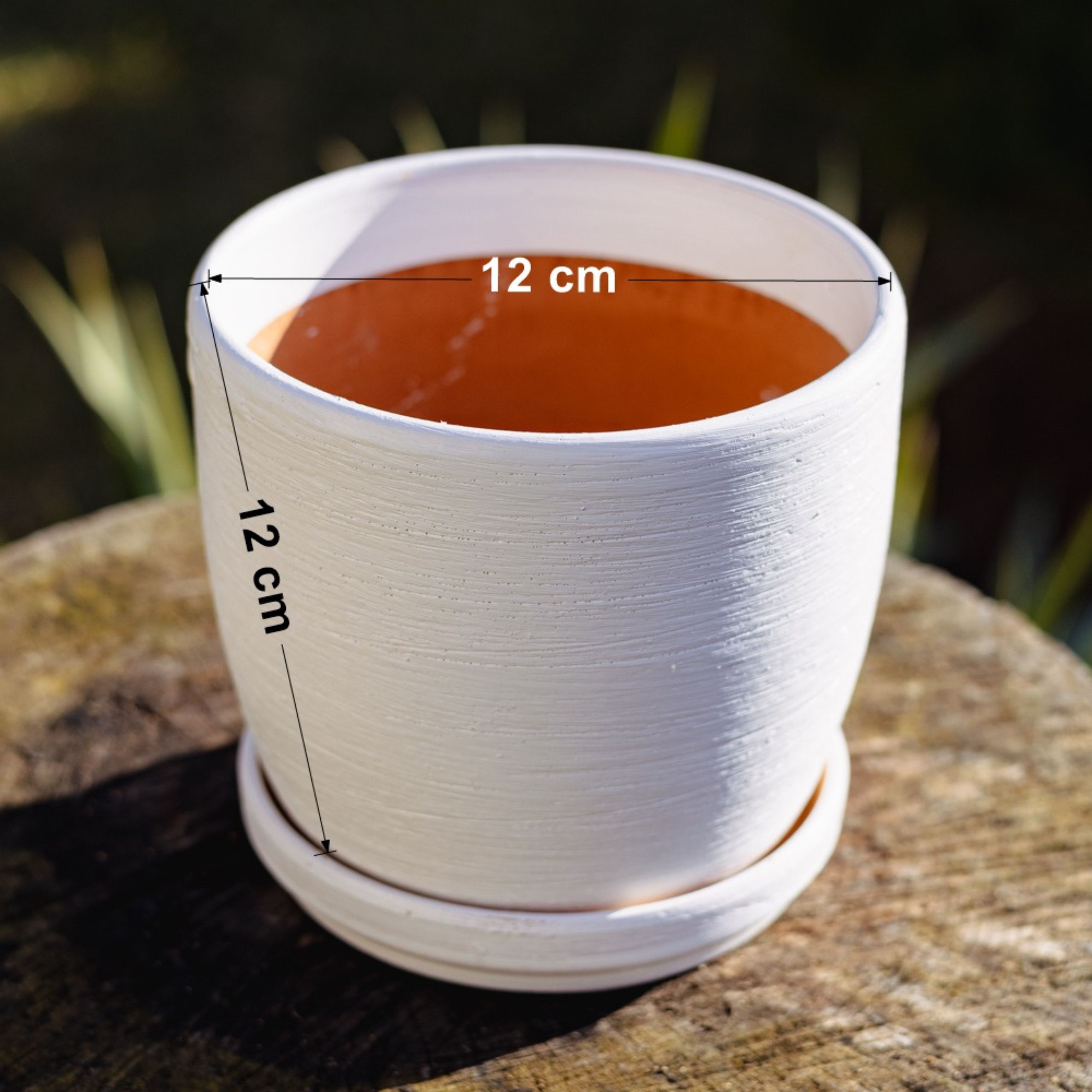 Doniczka gliniana z podstawką | Biała 12 cm